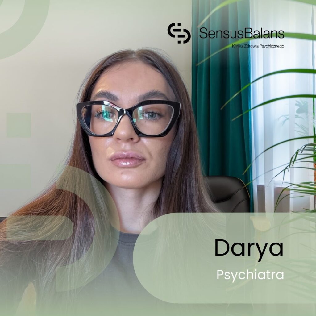 Nazywam się Darya Zarozhnaya (czyt. Daria Zarożna) i jestem lekarzem rezydentem psychiatrii. Od lat pracuję klinicznie i ambulatoryjnie, diagnozując oraz lecząc zaburzenia psychiczne. Doświadczenie zdobywałam m.in. w SPS ZOZ „Zdroje” w Szczecinie, gdzie prowadzę opiekę nad pacjentami na oddziałach całodobowych, w izbie przyjęć oraz w poradni zdrowia psychicznego.