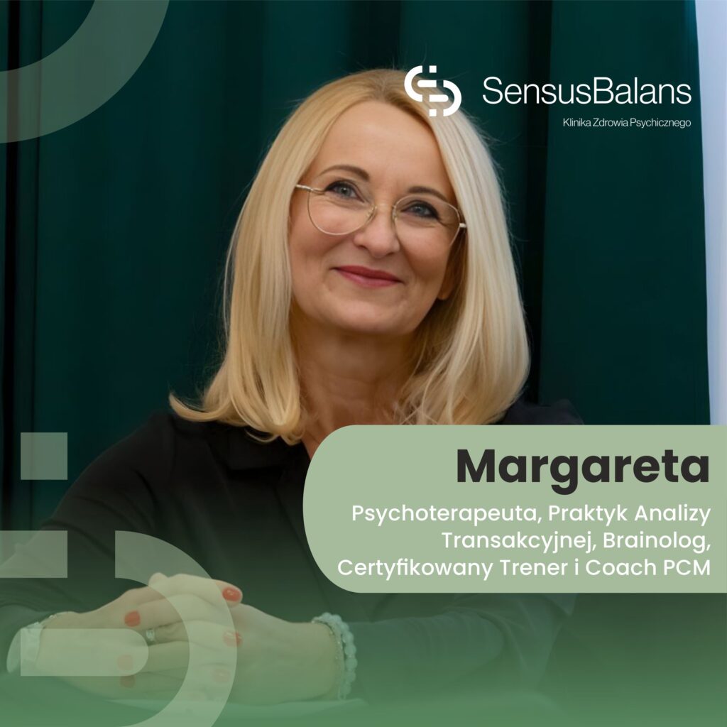 Mam na imię Margareta i od 15 lat pracuje z ludźmi w obszarze rozwoju osobistego jako Coach, Trener, Szkoleniowiec i Psychoterapeuta. Moje doświadczenie obejmuje pracę indywidualną, jak i prowadzenie warsztatów i szkoleń z psychoedukacji.