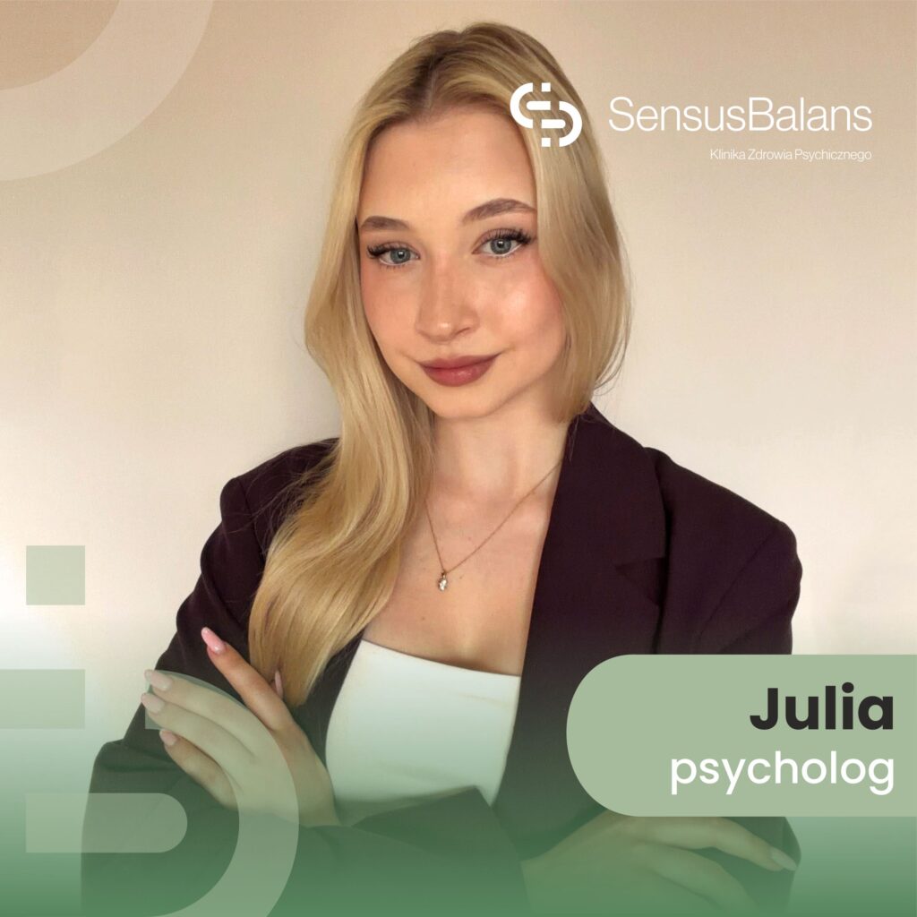 Mam na imię Julia. Jestem psycholożką, a w pracy szczególnie ważne są dla mnie uważność, empatia i budowanie relacji opartej na zaufaniu. Wierzę, że skuteczne wsparcie zaczyna się od spokojnej rozmowy, poczucia bezpieczeństwa i indywidualnego podejścia do każdej osoby.